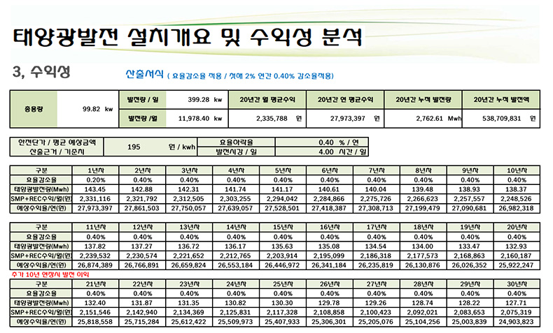 대전 유성에 태양광발전사업허가를 받아 태양광발전소 99.82kw를 준공하였습니다.