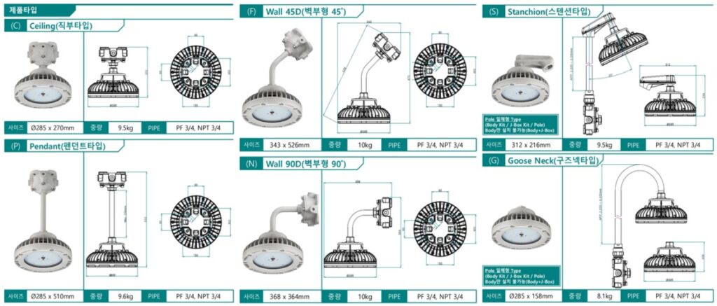 메탈할라이드 MH250w, 400w 램프방폭 등기구 대체 / 화학공장, 정유시설, 가스설비시설, 중고업현장, LPG충정시설, 프렌트 현장등
